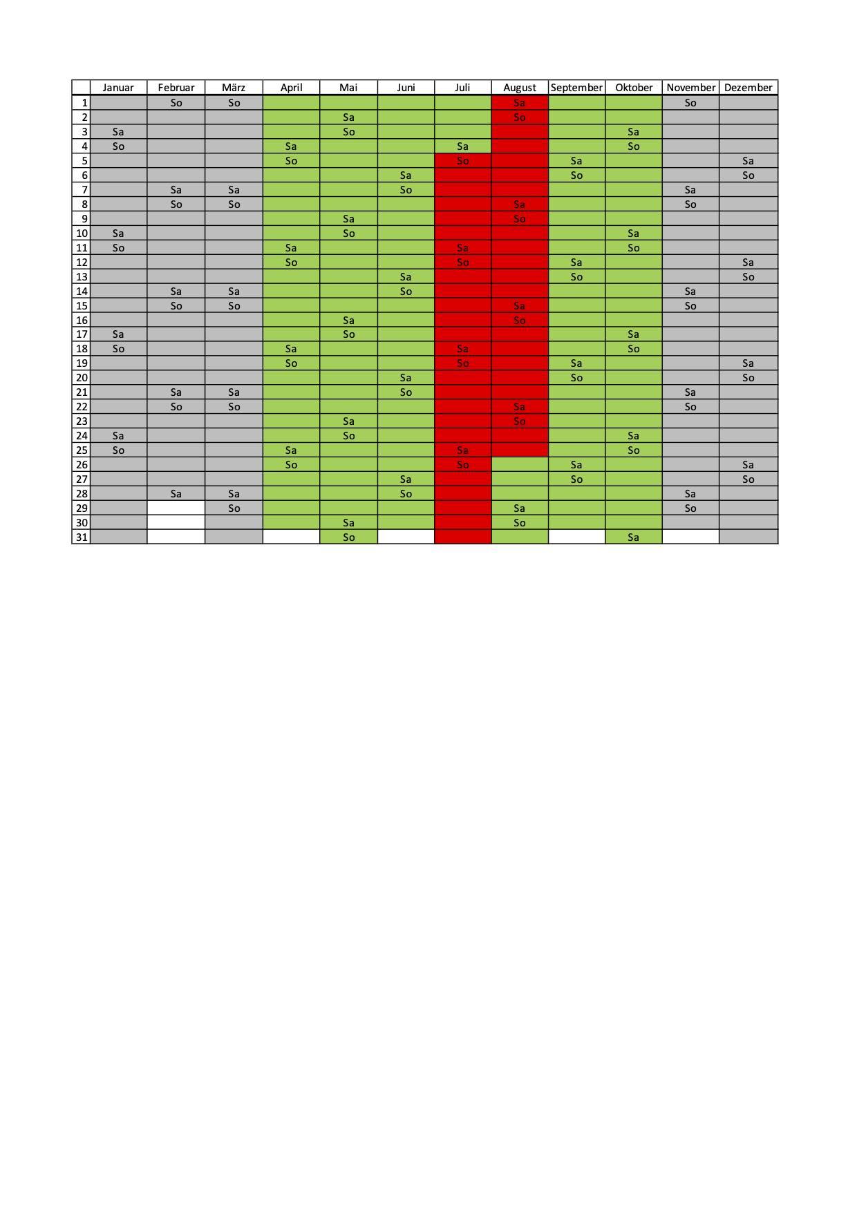 -Die grünen Bereiche sind noch buchbar